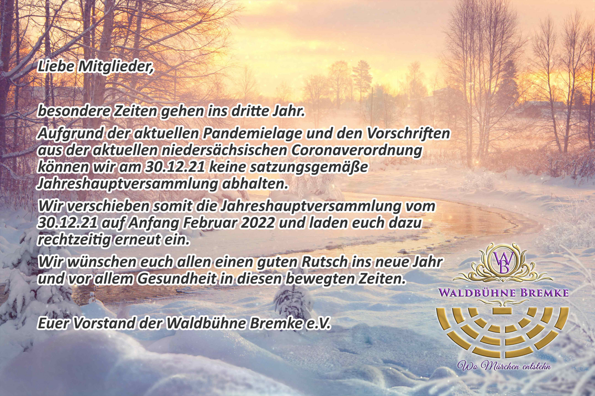 Jahreshauptversammlung der Waldbühne e.V. am 30.12. ist abgesagt