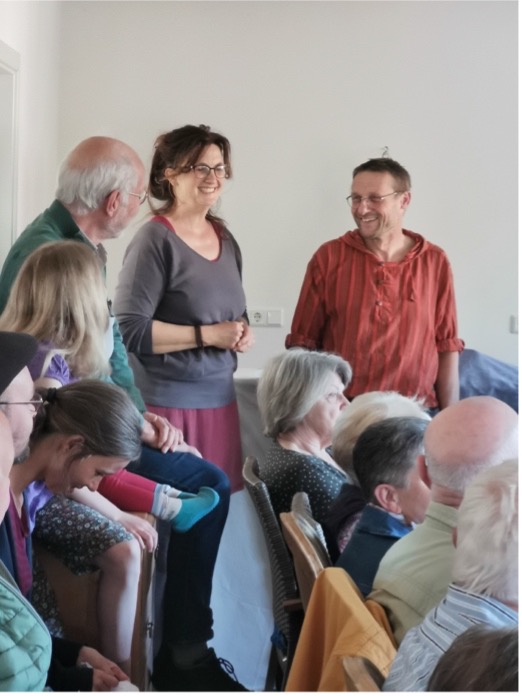 Am Sonntag den 27. April hatte der Heimatverein zu einem seiner beliebten „Diemardener Erzählcafés“ eingeladen, dieses Mal an einen ungewöhnlichen Ort: in das Seminarhaus der Familie Füllgrabe. Christina und ihr Ehemann Marco Füllgrabe sind die Betreiber des Naturmilchhofs Gartetal, einem Bauernhof, der sich dem ökologischen Landbau und der Förderung der Dorfgemeinschaft verschrieben hat. Mit rund 40 Mitarbeitern (m/w/d) erzeugen sie biozertifizierte Milchprodukte, haben das Dorfgarten-Projekt ins Leben gerufen, ein Seminarhaus errichtet, stellen Brot her und vermarkten ihre Produkte im eigenen Hofladen. In unterhaltsamen eineinhalb Stunden erzählte das sympathische Paar, wie alles entstand und wohin die Reise noch gehen soll.