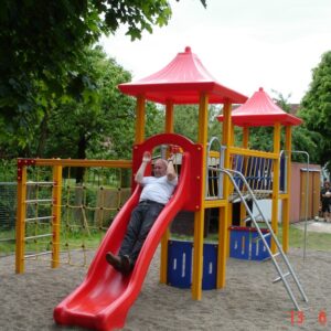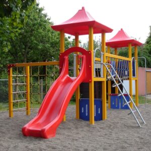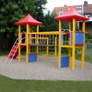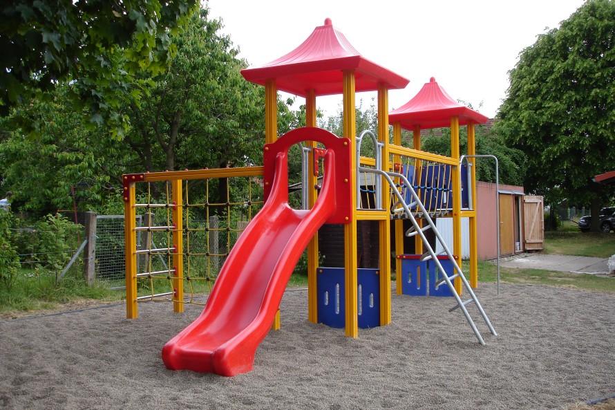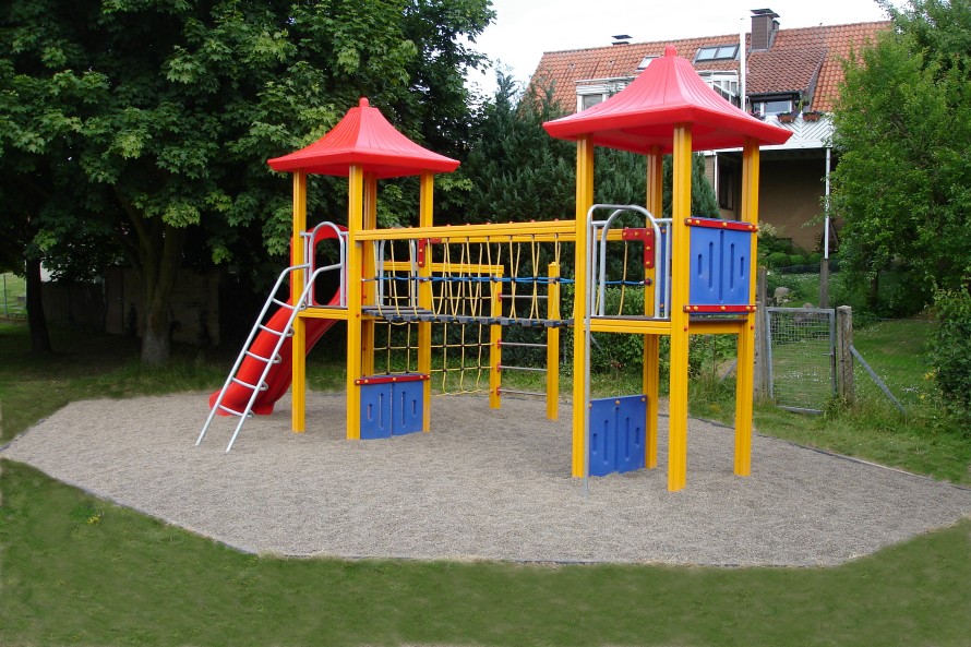 Das Spielgerät hat eine Umrandung erhalten, die mit einem Fallschutz aufgefüllt ist