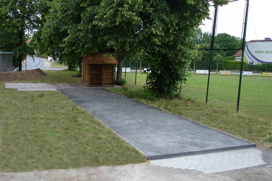 Boulebahn, Schachfeld und Gerätehaus sind soweit fertig und warten auf ein kleines Einweihungsfest.