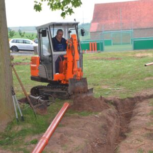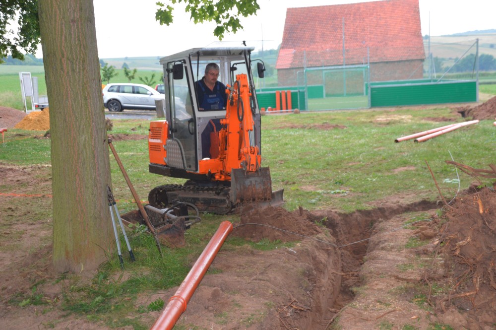 für die Erdverkabelung verlegt werden. Unter anderem wird damit die Flutlichtanlage befeuert.