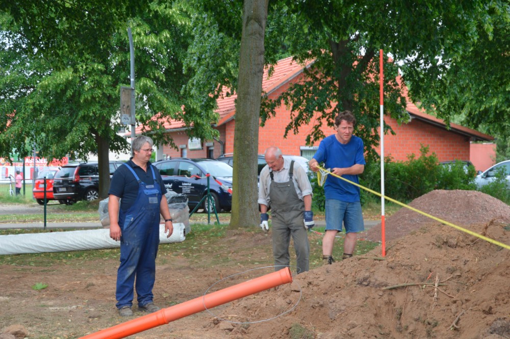 13.06.2015-Der Bau des Beach-Volleyballfeldes beginnt