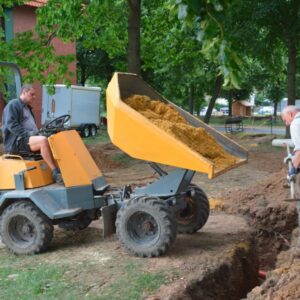 An diesem Samstag begannen die Bauarbeiten für das geplante Beach-Volleyballfeld,