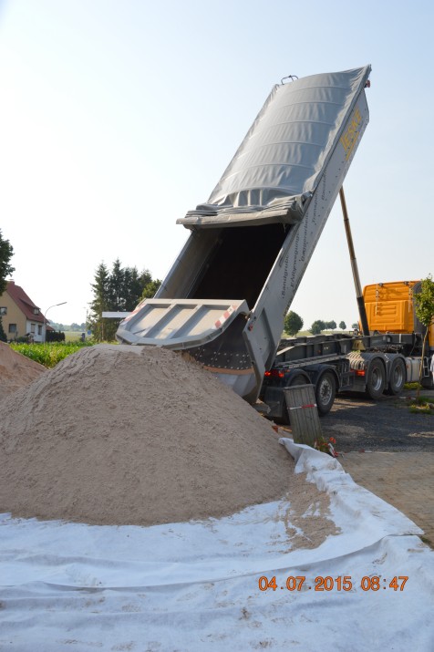 wurden ca. 180 Tonnen Sand angeliefert und auf dem Feld verteilt.
