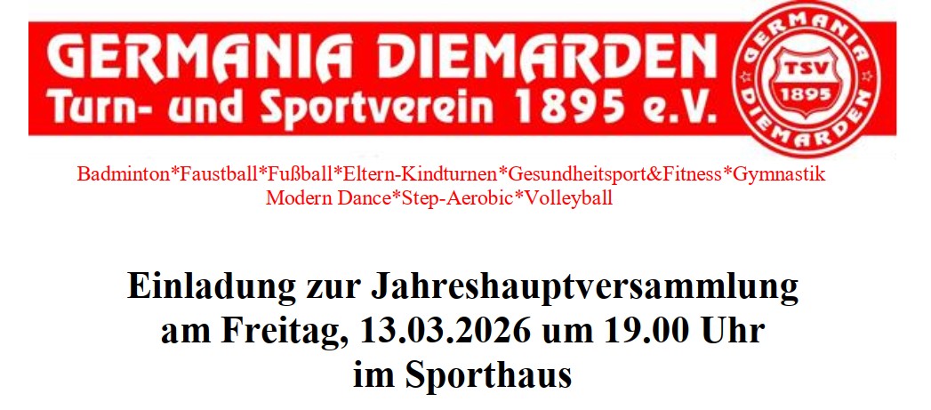Einladung zur JHV des TSV Germania Diemarden von 1895 e.V.