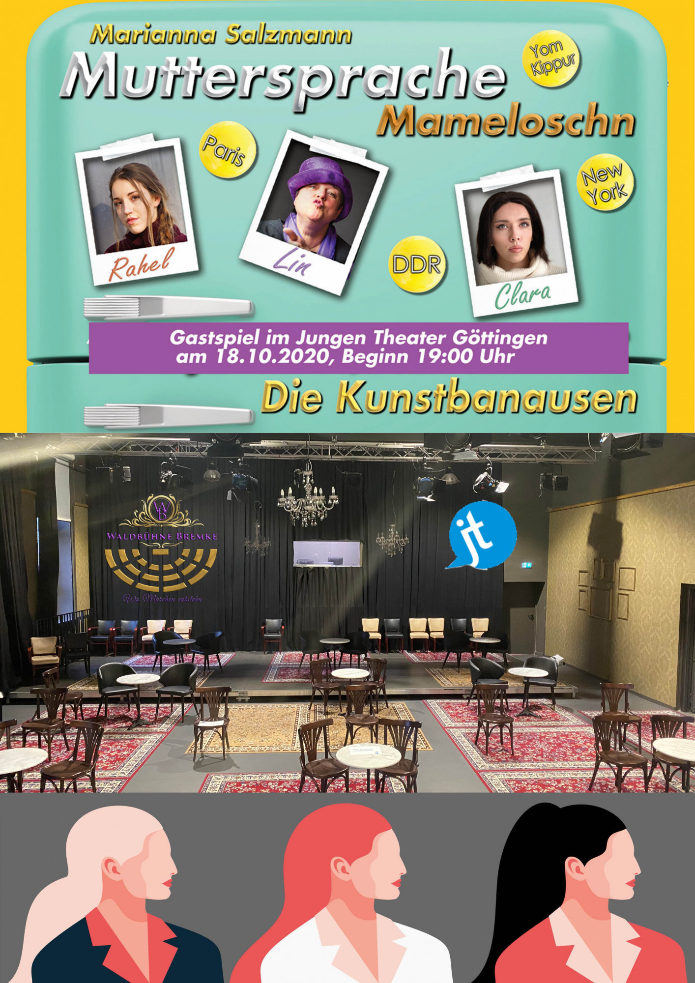 Die Kooperation der Waldbühne e.V. Bremke mit dem Jungen Theater ist nicht einseitig: Am nächsten Sonntag, den 18.10.2020 wird das Theaterstück „Muttersprache -Mameloschen“ als Gastspiel im Jungen Theater (JT) in Göttingen aufgeführt. Beginn 19:00 Uhr, Einlass ab 18:00 Uhr. Mit dem Stück „Muttersprache-Mameloschen“ am 18.10.2020 im JT Göttingen schließt die Waldbühne die Theatersaison 2020 ab.